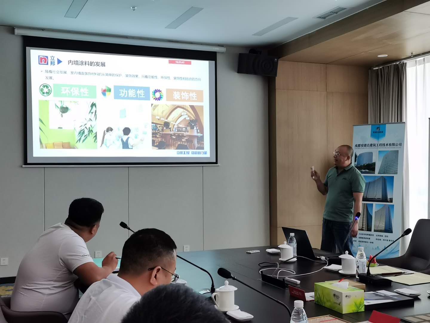 2020年6月5日下午,公司邀請(qǐng)西南建筑設(shè)計(jì)院、立邦涂料、生物城建設(shè)有限公司等方面領(lǐng)導(dǎo)及行業(yè)專家,共同就“科技新型墻材地材在現(xiàn)代建筑中的設(shè)計(jì)與應(yīng)用”為主題進(jìn)行了分享和深入交流。